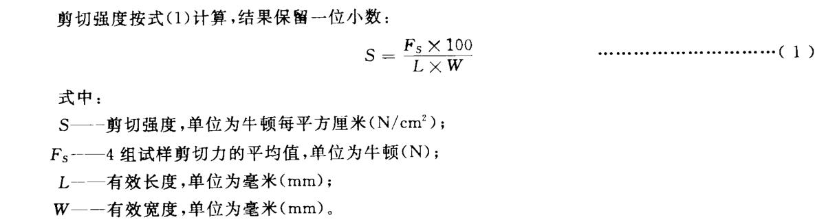 剪切強度是在規定的試驗條件下,將粘扣帶有效閉合區域沿其長度方向以恒定速度拉伸,使鉤面帶和圈面帶平行分開每單位面積所需的最大力。