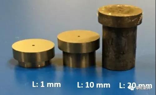口模越長,由入口壓降引起的誤差越小。換句話說,毛細口模內充分流動的部分相對于入口區域隨著模長增加而增大。原因很簡單,即粘彈性聚合物熔體呈時間依賴性。由于聚合物熔體在口模內停留的時間較長(使用較長的模具),材料鍛造口模入口處施加的彈性變形。建議使用長模(L > 15mm)測量剪切粘度。短模(L<15mm);建議用于測量模具的彈性性能(如脹模率、壁滑速度等)。下圖顯示了三個不同長度的模具。